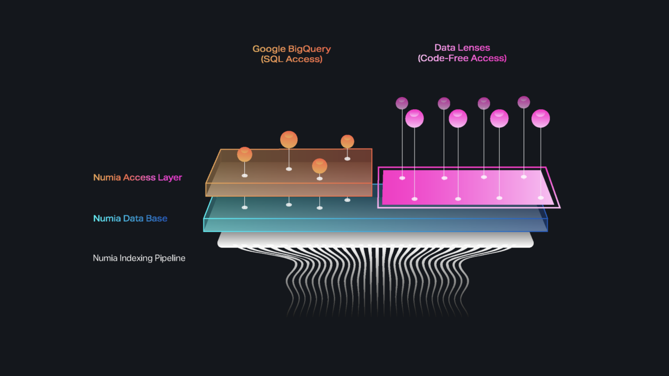 Currently, Numia provides SQL-based access to on-chain data through BigQuery, so you can query billions of rows using SQL-like syntax, making it an ideal solution for working with Numia’s extensive datasets.